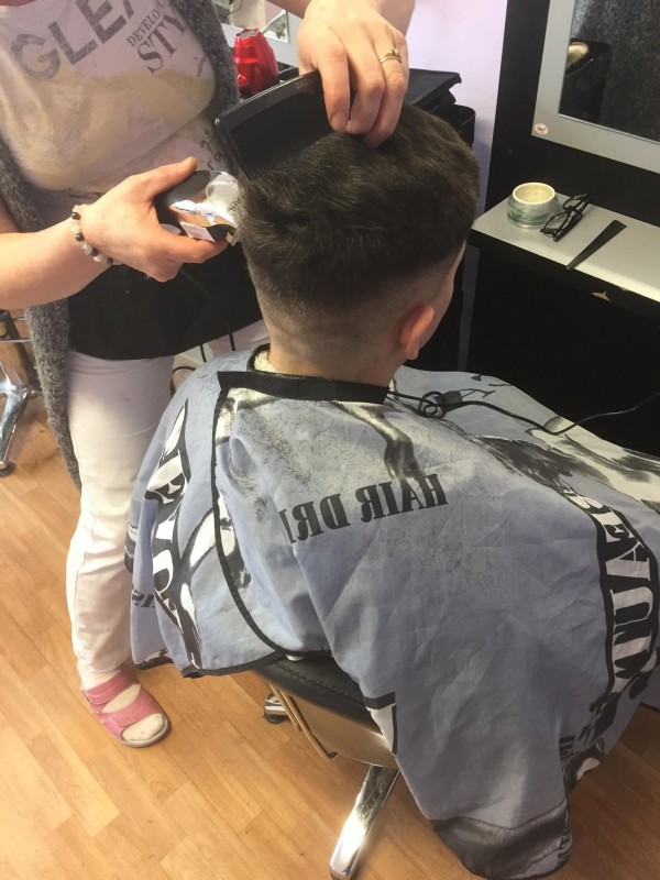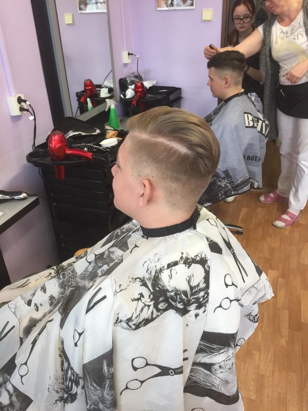 Žákyně prvního ročníku se uskutečnily další souborné práce tématem pánského střihu fade. OV Renáta Porubová